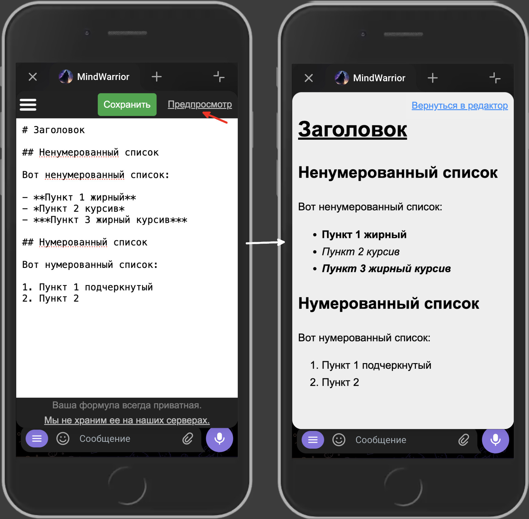 Редактор Формулы поддерживает markdown.