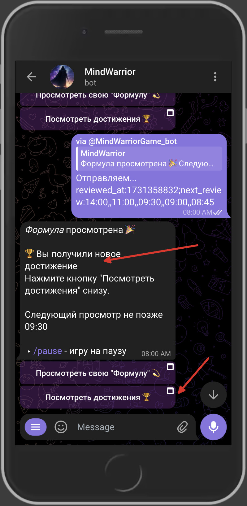 Важно! Если ваша Формула будет просмотрена во время вашего «интервала сна», игра возобновится. Это означает, что вы можете быть оштрафованы, если пропустите следующий запланированный просмотр (например, если однажды вы сделаете «поздний» просмотр в то время, когда вы обычно спите в другие дни). Чтобы избежать этого, вы можете вручную приостановить игру с помощью команды /pause после завершения «позднего» просмотра.