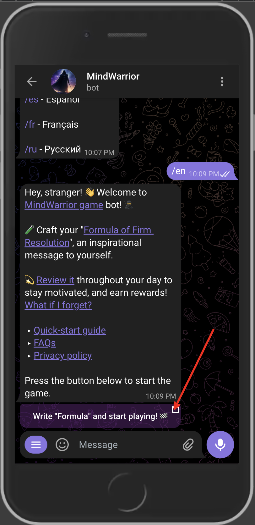 Welcome to "MindWarrior" game bot!